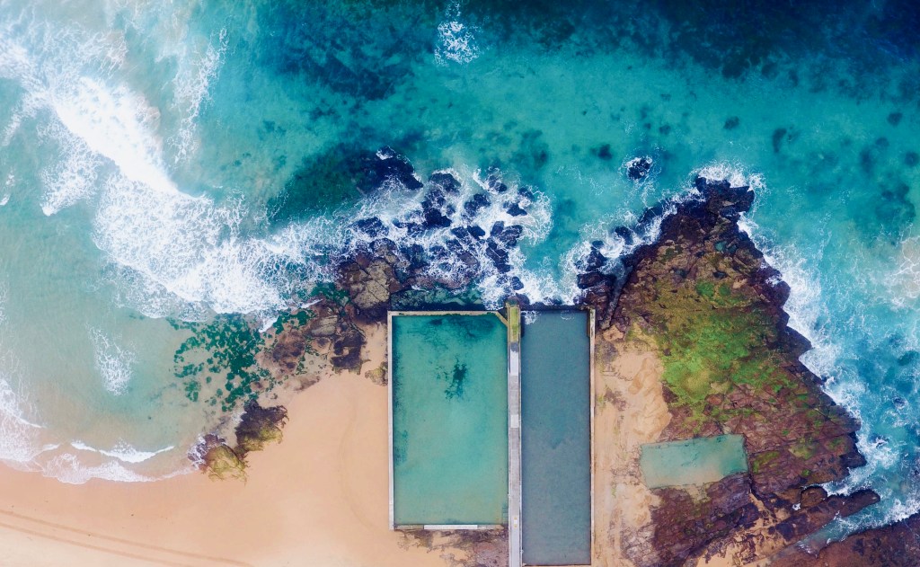 The beautiful twin pools of Austinmer beach is just a little south of Coledale on the Wollongong Coast, NSW.